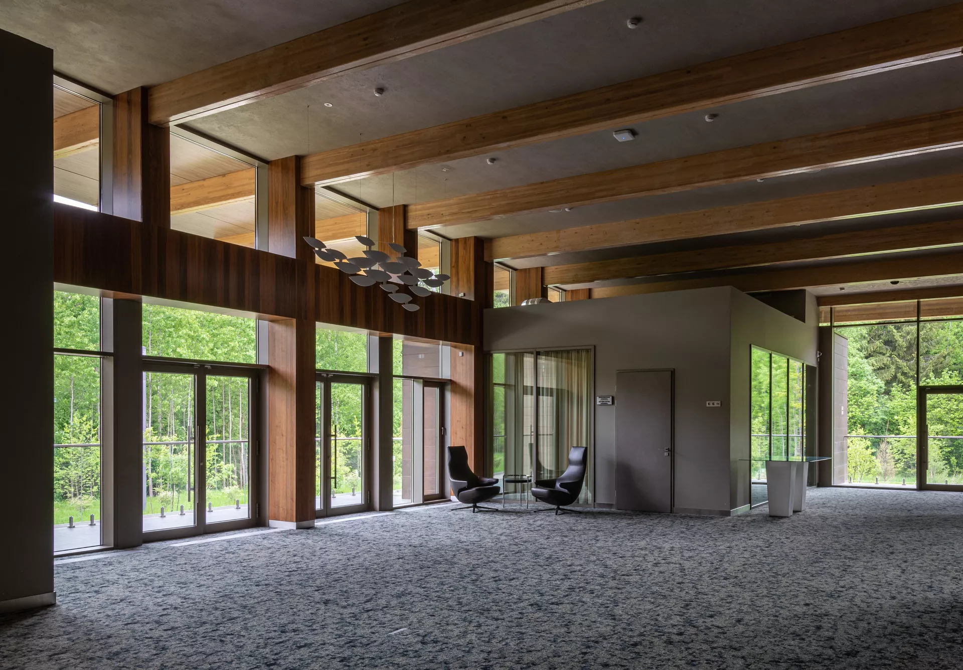Благодаря мобильным перегородкам зал трансформируется в три отдельные зоны. При разделении два крайних зала насчитывают площадь в 60 м² каждый. Вместимость составляет от 20 до 40 человек. Третий зал — 190 м² — позволяет принять до 80 гостей.