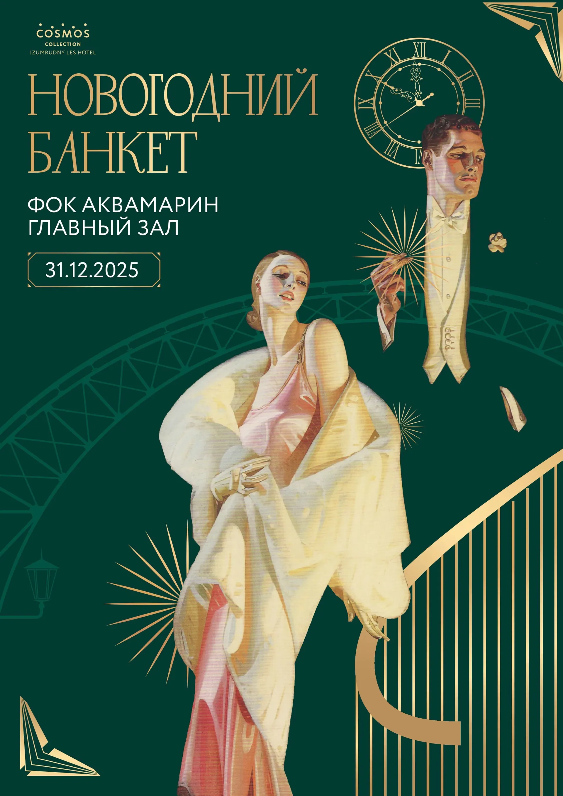 Cosmos Collection Izumrudny Les Hotel представляет Новогоднюю программу «Изумрудный экспресс: Навстречу мечтам». Гостей ждёт незабываемое путешествие в 2026 год с живой музыкой, иммерсионными перфомансами и специальным гостем вечера — звездой российской эстрады и кумиром миллионов Сергеем Лазаревым.