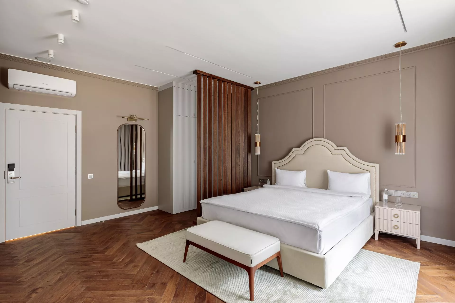 Вилла располагает шестью вместительными спальнями, расположенными на разных этажах: одна спальня на первом, четыре спальни на втором и одна на третьем этаже. Благодаря большим окнам в каждой из комнат много естественного света.