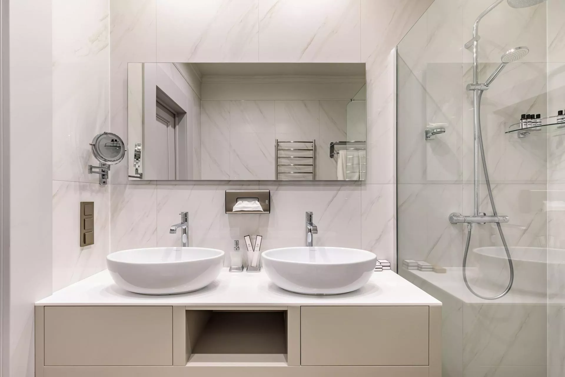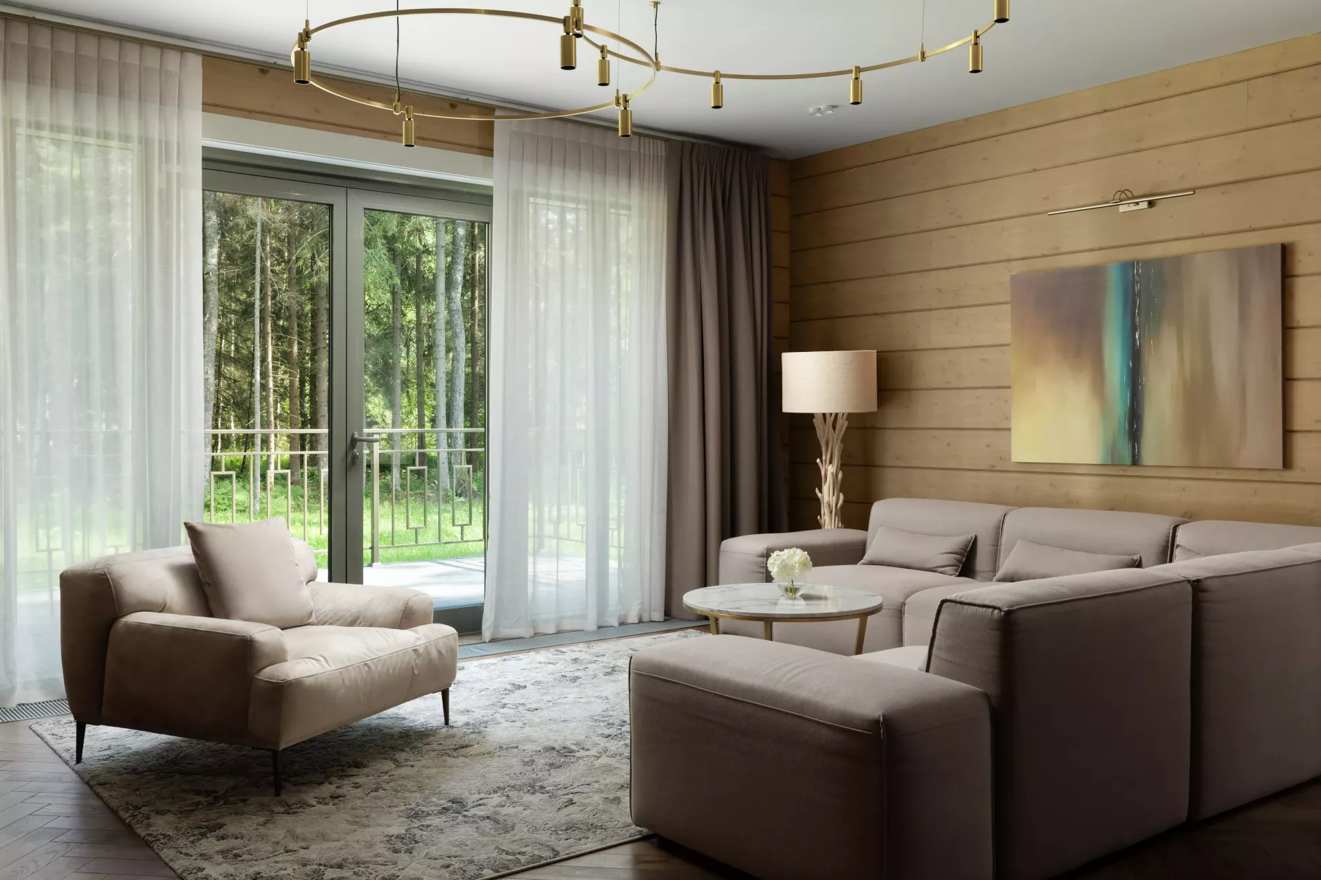 На первом этаже находится огромная по площади роскошная гостиная, оформленная в светлых тонах. Это пространство идеально подходит для общения, отдыха и оживленных игр. В дополнение к основной гостиной, вилла предлагает отдельную уютную гостиную, где можно уединиться с книгой или насладиться просмотром фильма.