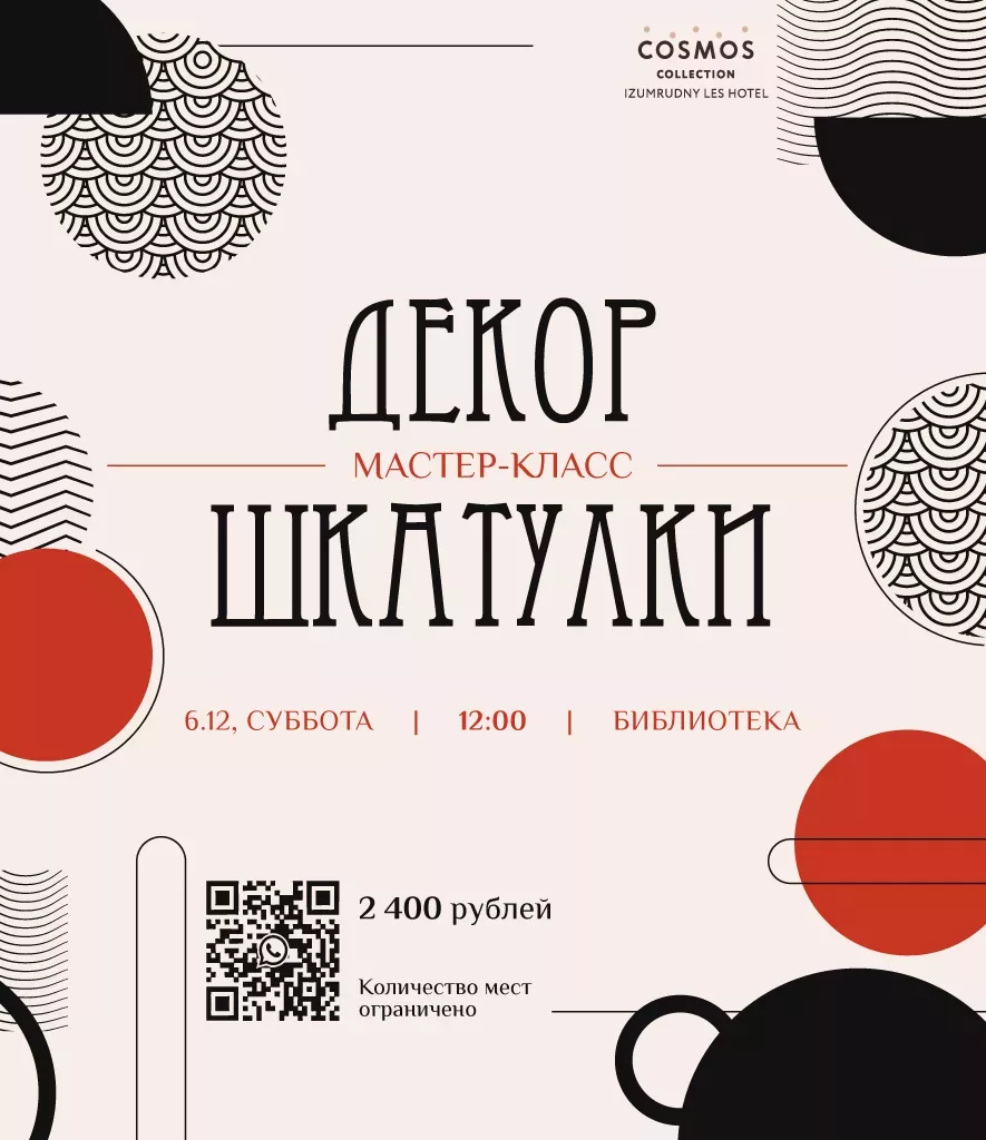 Самые ценные вещи — те, что созданы своими руками. Приглашаем вас на мастер-класс, где простая шкатулка превратится в авторский предмет с особой историей. На занятии познакомимся с искусством работы с цветом, фактурами и декоративными элементами — и создадим то, что не купить в магазине.