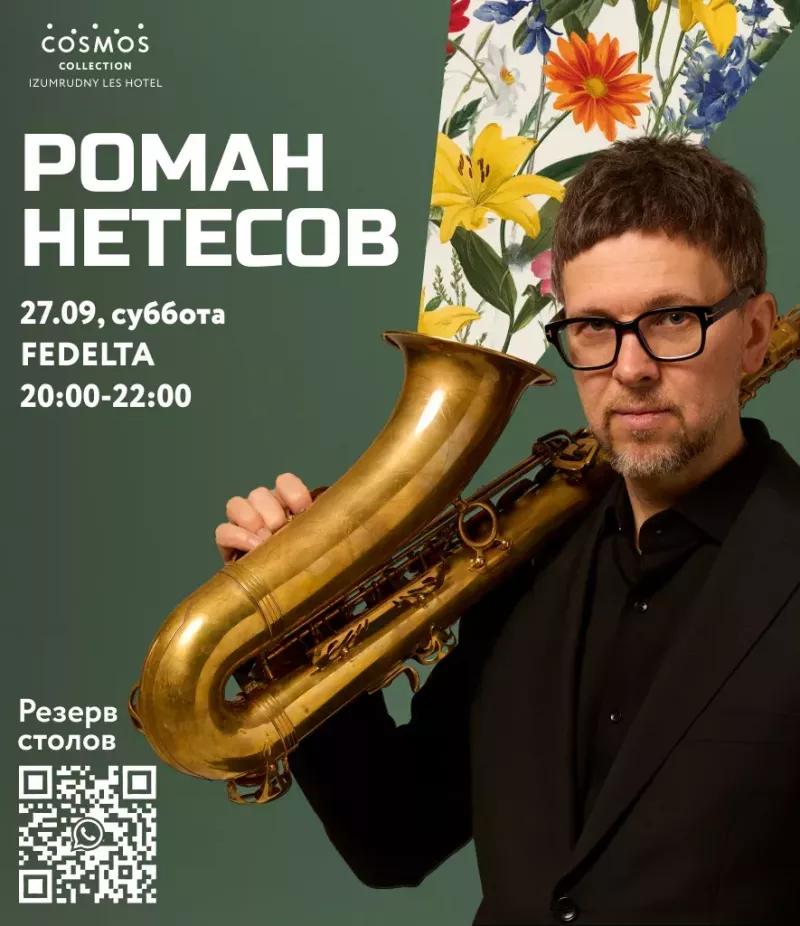Приглашаем вас на концерт виртуозного саксофониста Романа Нетесова, лидера Netesov Jazz Quartet, который посвятил музыке более 25-и прекрасных лет. За плечами музыканта — сотни выступлений на престижных площадках и сотрудничество с известными джазовыми исполнителями.