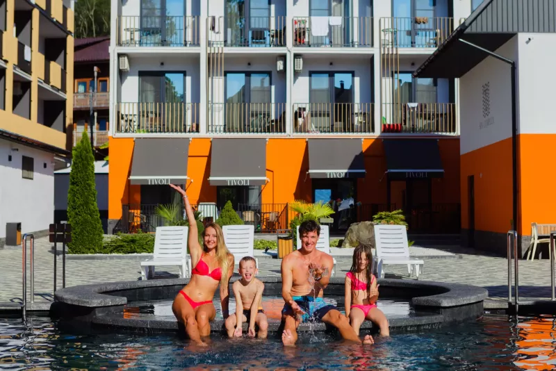 - Гостевое пребывание – 1 000 руб/чел (пребывание на территории отеля, посещение открытого подогреваемого бассейна, пользование детскими площадками).