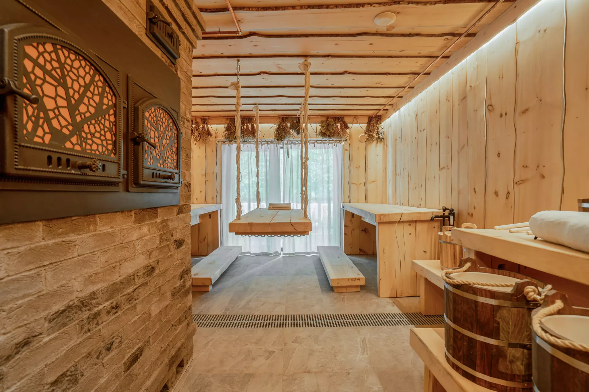 Финская сауна — это классика термального отдыха. Здесь вас ждет сухой жар, который проникает в каждую клеточку вашего тела. Температура в сауне достигает 80-100 градусов по Цельсию, что способствует активному потоотделению и выведению токсинов. Мы рекомендуем вам чередовать посещение сауны с холодным душем или купанием в бассейне для максимального эффекта. Аромат хвойных деревьев и специальные настои на травах создадут атмосферу уюта и расслабления.